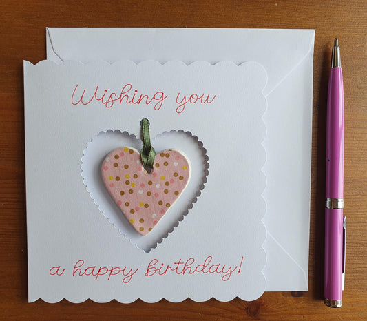 Handmade Birthday Card with Removable Clay Heart Keepsake Token - Send Love and Warm Wishes with a Pocket Hug