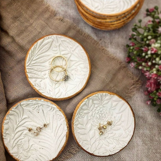 Gold Edge Rustic Hearts Clay Trinket Dish