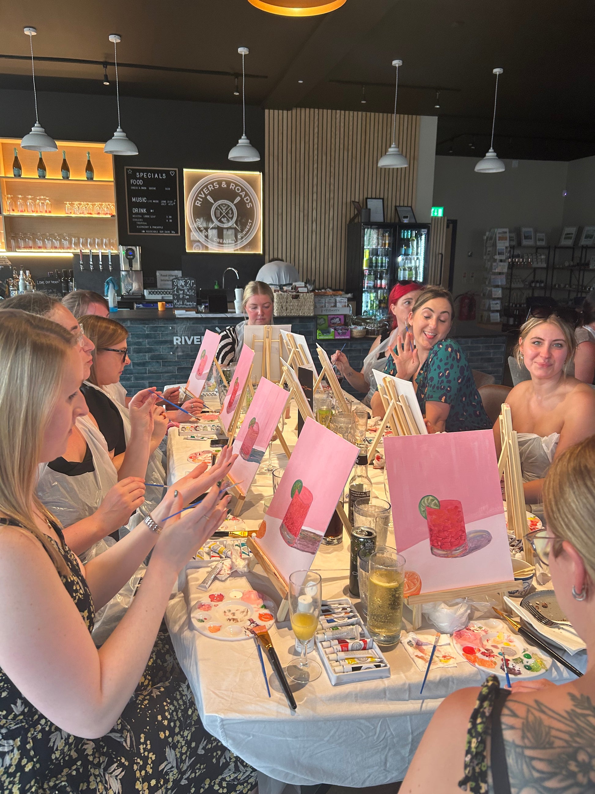 Your ticket includes a glass of prosecco or a soft drink, and a traybake, as well as everything needed to create your painting. The bar will also be open if you'd like to purchase further drinks.