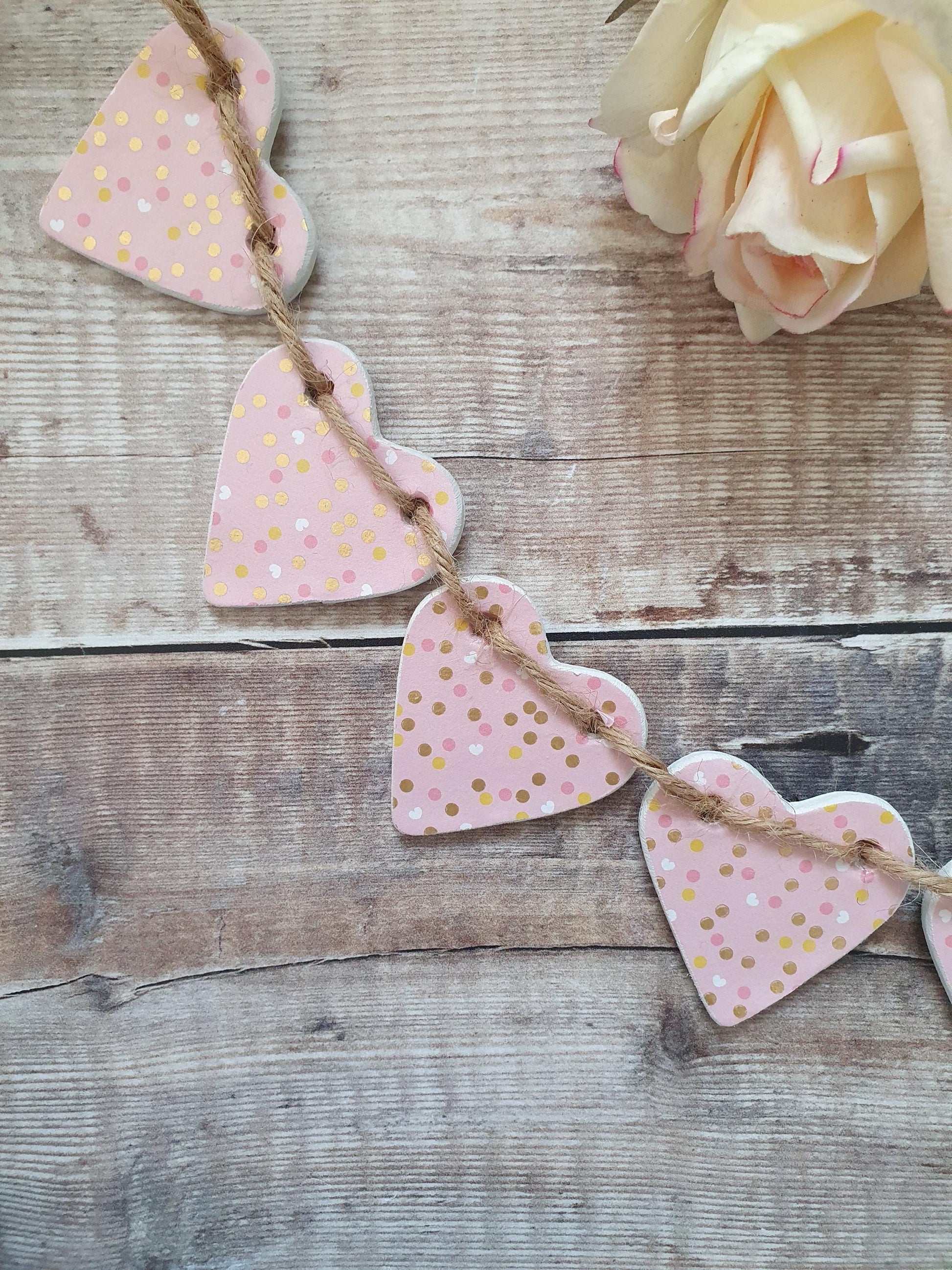 Handmade Pink Confetti Heart Garland | Clay Decoration | Gift Boxed | 110cm
