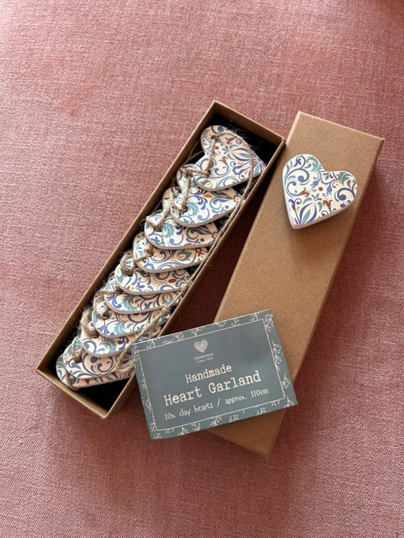 Handmade Clay Heart Garland | Tile Print Decoration | Gift Boxed | 110cm